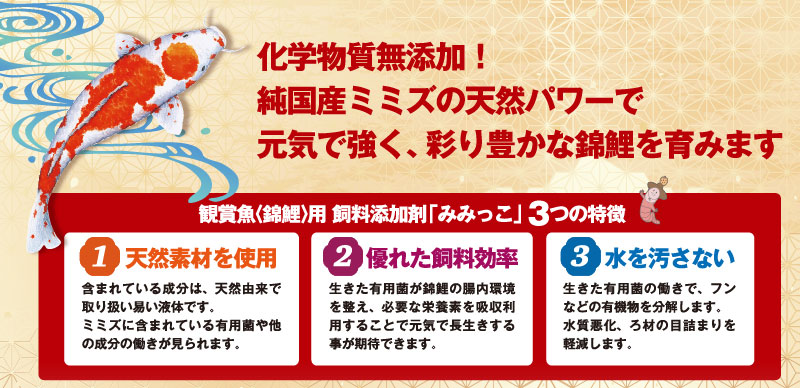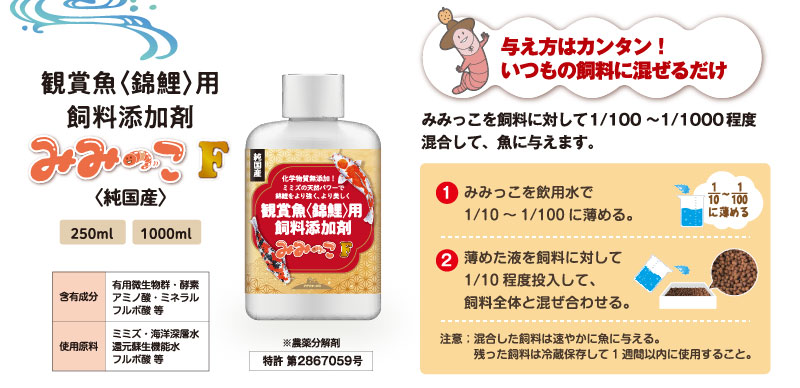 | 商品名 | 観賞魚《錦鯉》用 飼育添加剤みみっこF |