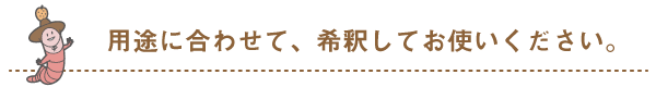 土づくり初回時に50-100倍、土壌散布には300-500倍、葉面散布には500-1000倍に希釈してご使用ください。